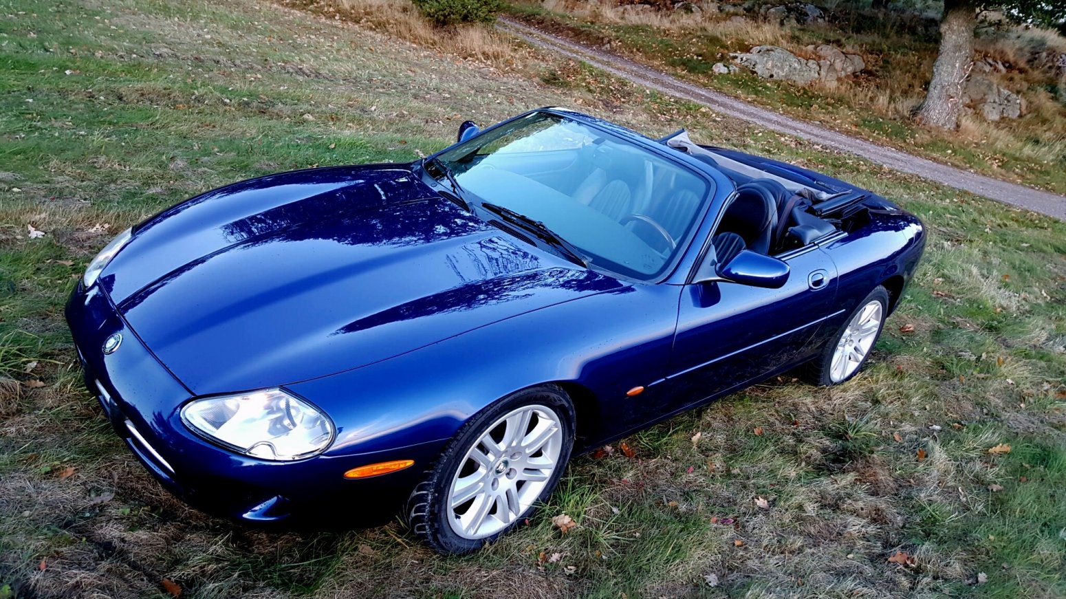 Blå metallic med svart skinn. En ägare i Norra Italien. Aldrig körd i regn. Toppexemplar. Nästan nya däck. Levereras med nya kedjesträckare, vattenpump och termostat samt nyservad och nybesiktigad! Nya stötdämpare fram. Kvitton från Jaguar medföljer på betydande summor för bland annat byte av diverse bussningar i framvagnen. Påkostad bil detta.